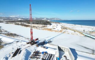 今年最後の記事は、弊社が枝幸町で受注する「一般国道238号 枝幸町幌別橋P1仮桟橋設置工事」の現場情報です。こちらは橋の新設工事において、川の中央あたりに支柱を建設するための仮桟橋を造る工事内容となっています。 宗谷地域に拠点を置く弊社として、稚内市の本社、猿払村の本店からは離れていますが、実は、枝幸町で工事を受注しておりました。工期は7月からでしたので、早く撮影に来たかったのですが片道2時間のためなかなか来れず・・・。先日の社内安全パトロールに同行した際に、少し時間をいただいて撮影しました! 弊社は12/27(土)〜1/5(月)にて年末年始休業となります。本年も沢山の方々にお世話になりました。皆様、良いお年をお迎えください。来る2026年も邁進して参りますので、どうぞ宜しくお願い致します。 企画室 渡辺