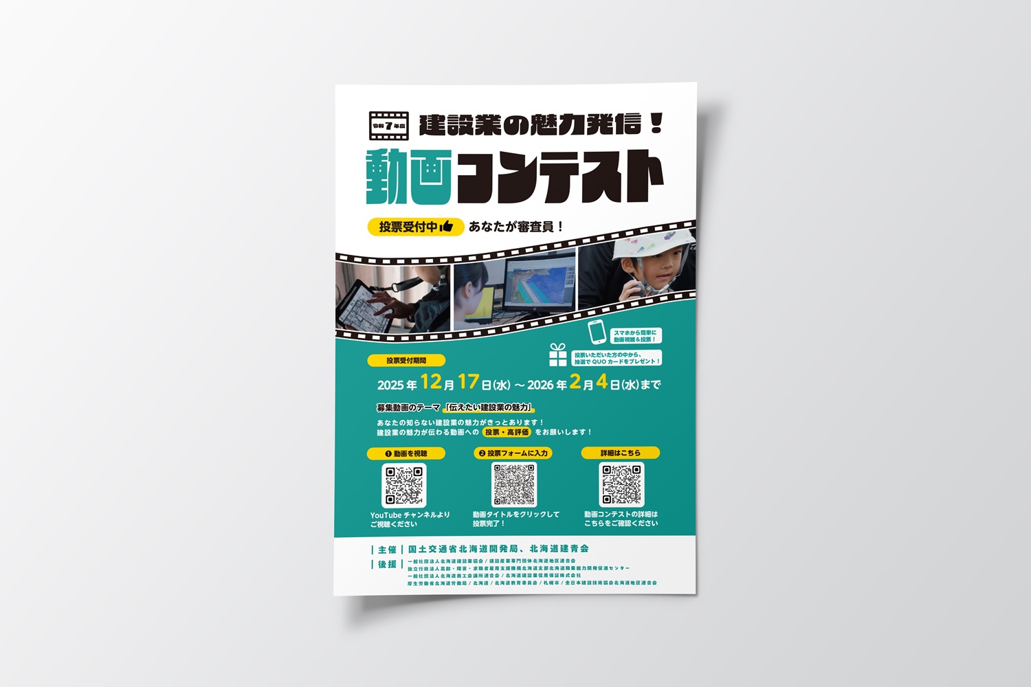 本日12/17(水)北海道開発局様と北海道建青会様が主催する「令和7年度 建設業の魅力発信!動画コンテスト」の投票がスタートしました!!弊社も動画を作成しエントリーしています。作品番号17ですので、「いいね」と「投票」を宜しくお願いします。